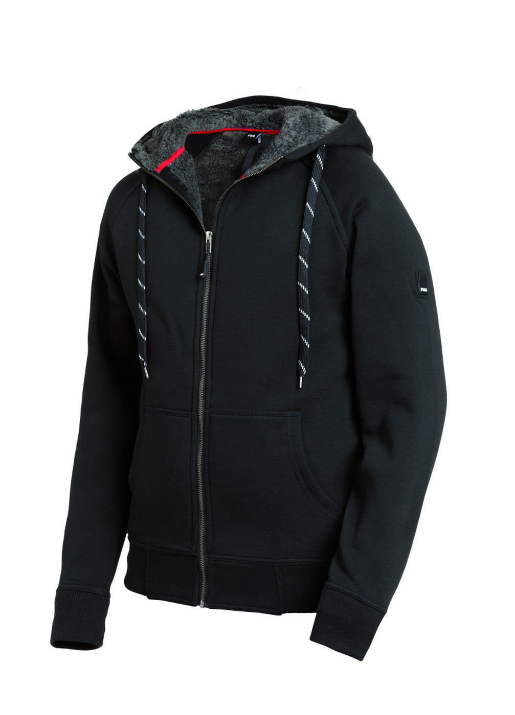 FHB JÖRG Sweater-Jacke mit Kapuze und Webpelz schwarz