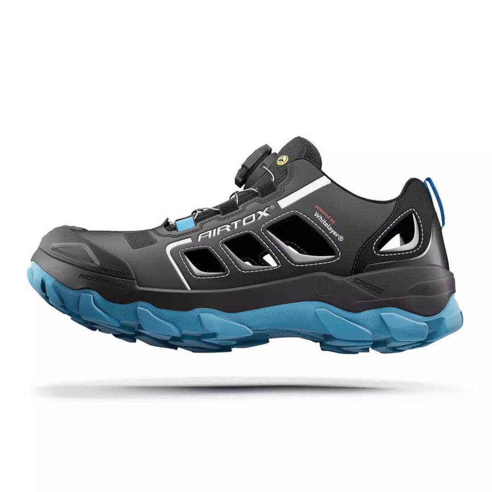 AIRTOX GL22 ist eine extrem offene, atmungsaktive Sicherheitssandale mit Whitelayer® Nagelschutz, ergonomischer Aluminiumkappe und AIRTOX PRO Smart Lacing. Zertifiziert nach EN ISO 20345:2011 S1-P SRA ESD. Wichtig: Der GL22 ist nicht wasserdicht – ideal für warme, trockene bis wechselnde Arbeitsbereiche, wenn maximale Belüftung zählt.