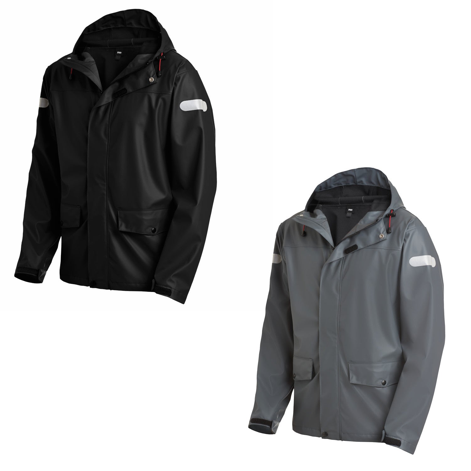 Hochwertige Regenjacke nach EN 343 aus leichten PU-Stretch für eine gute Bewegungsfreiheit bei der Arbeit.
