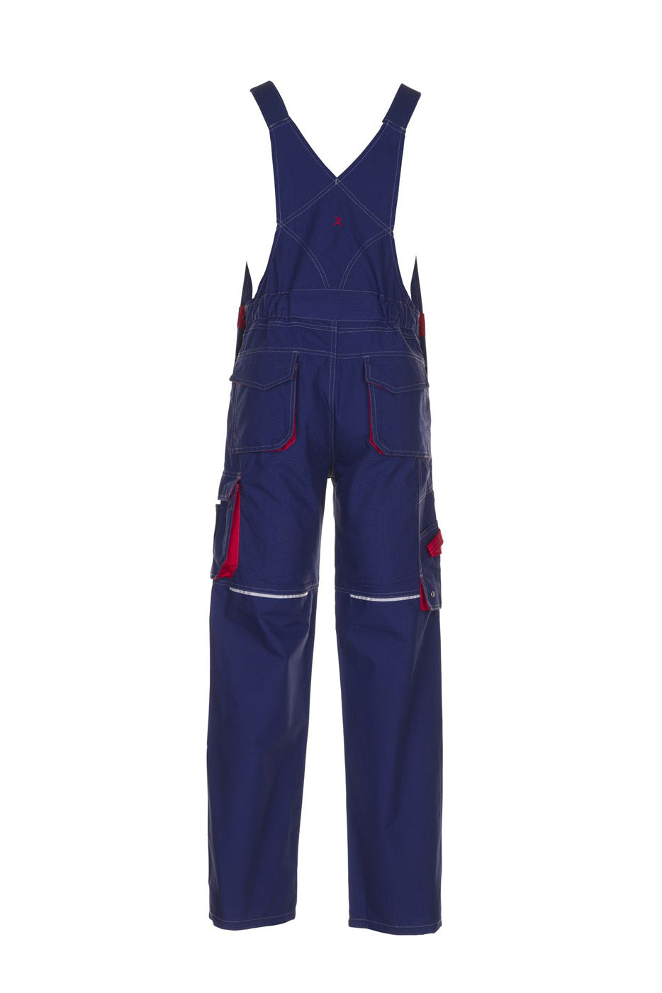 Als Klassiker unter den Arbeitshosen bietet die Basalt Latzhose durch das hochgezogene Rückenteil Tragekomfort, ohne zu verrutschen, und die Reflexbiesen als Designelement.