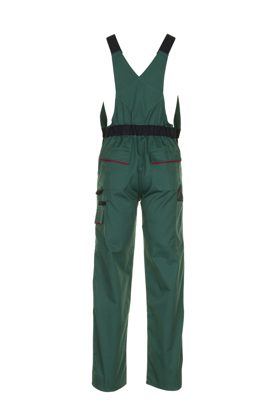 Perfekter Sitz durch das hochgezogene Rückenteil mit Trägerkreuz Alles dabei: Die doppelte Maßstabtasche hält Ihr wichtigstes Arbeitswerkzeug immer parat. Mehr Bewegungsfreiraum durch die seitliche Bundweitenverstellung Die Latztasche mit Patte und Klettverschluss bietet optimalen Stauraum.