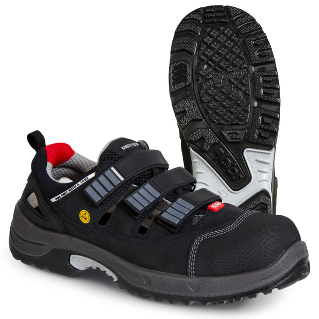 Leichte, weiche und atmungsaktive Sicherheitssandale mit ausgezeichneter Ergonomie und höchstem Schutz (S1). Der PU-beschichtete Leder- und Spaltlederschuh mit gepolsterte Memory-Foam schützt in Innenbereichen. Eine ölbeständige RPU-Außensohle bietet hervorragenden Grip, während JALAS Alu-Zehenschutzkappen und doppelte Stoßschutzzonen aus PORON XRD schützen und die Merino-Einlegesohle den Fuß trocken hält.