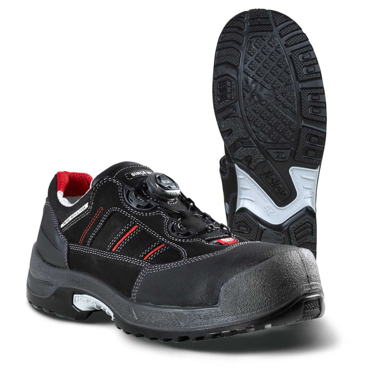 Komfort und Schutz in einem Sicherheitsschuh (S3) mit BOA® Fit System und PU-beschichtetem Leder. Exzellente Ergonomie und Antistatik für eine bessere Passform und Merino-Innensohle für trockene Füße. Die ölbeständige RPU Außensohle sorgt für hervorragenden Grip. Er hat auch JALAS® Alu-Zehenschutzkappen, PTC Durchtrittsschutz und integrierte Dämpfung aus PORON® XRD®.